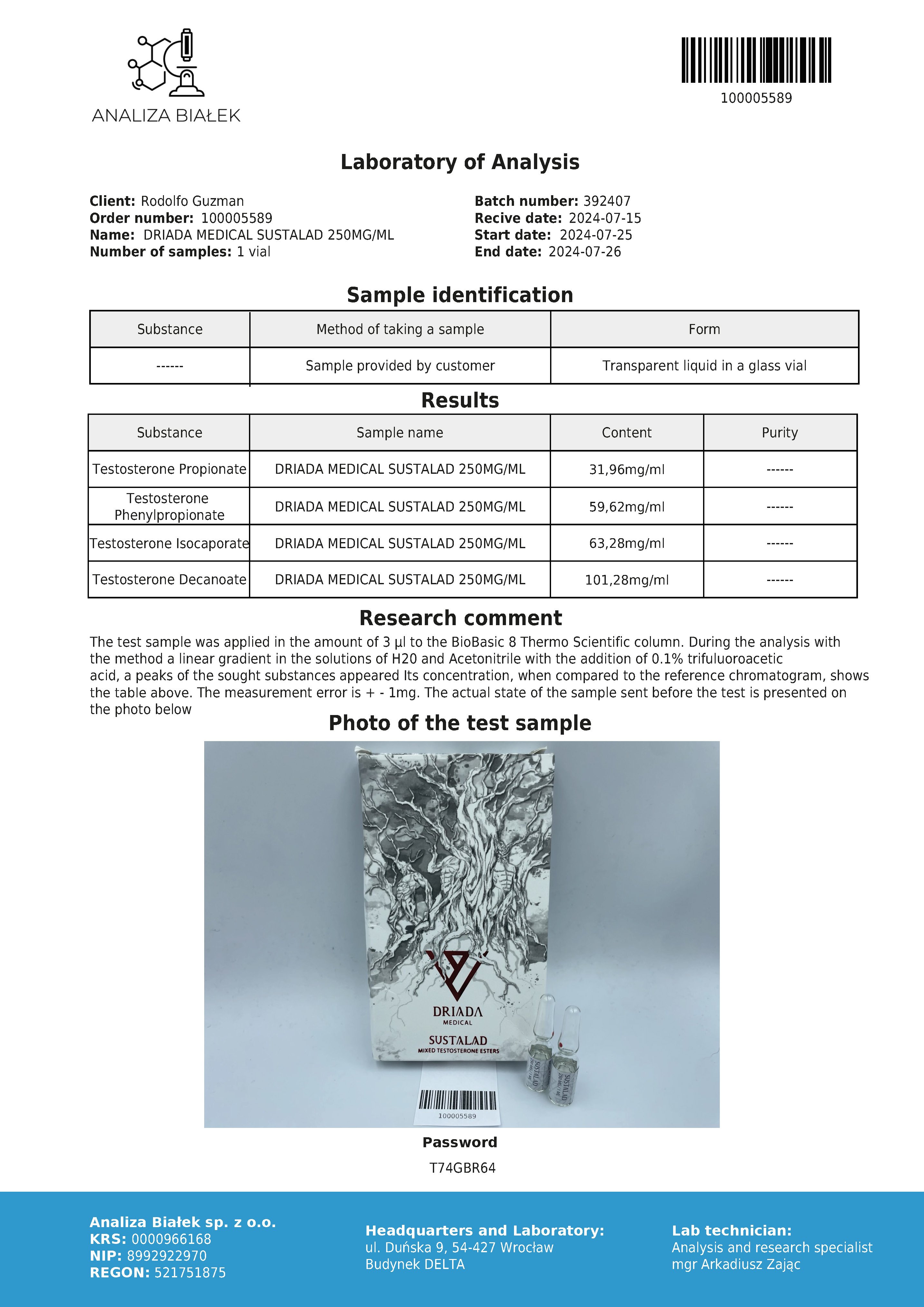 We remind you that we support the idea of blind testing for everyone who wants to test our products. You can do a blind test by yourself! You can send to any lab which you want, for example