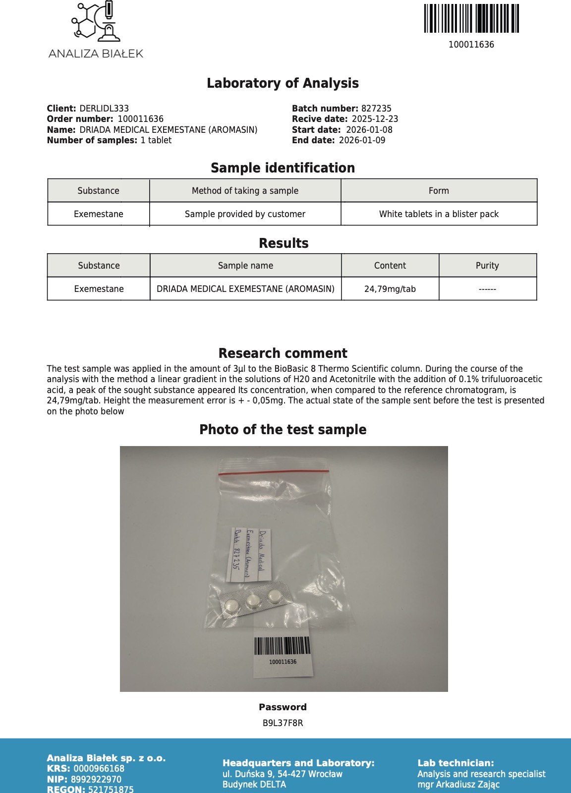 Within a few weeks, you will receive a response as well as a verification code to verify the authenticity of the tests.
